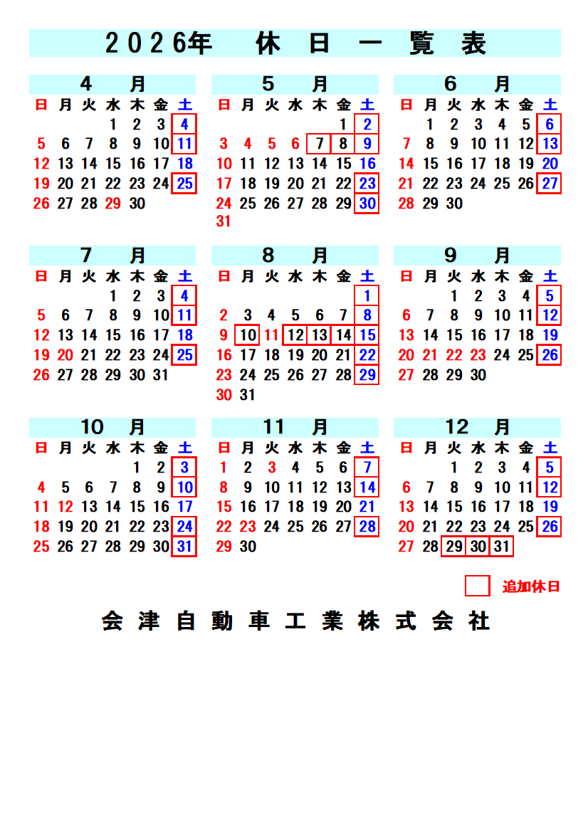 このたび、働き方の見直しに伴い、2026年4月より休業日を追加させていただくこととなりました。